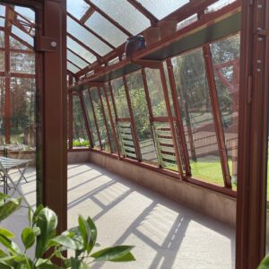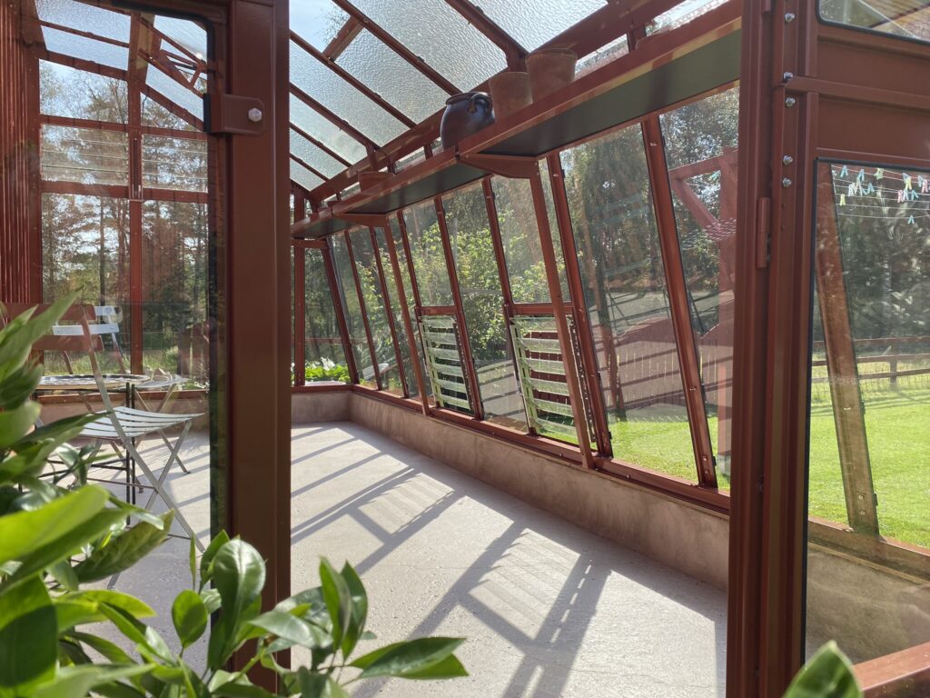 Overflade af høj kvalitet. Du vælger selv, hvilken overflade du ønsker på loft og vægge. Det er muligt at vælge mellem forskellige typer af uforstærket og forstærket glas samt 8 mm tykke, højkvalitets kanalplastplader med indbygget UV-beskyttelse.