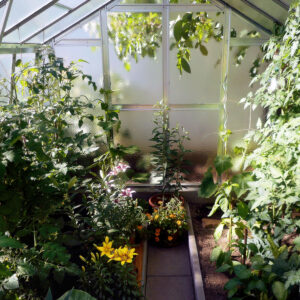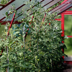 Ventilation og tilpasningsmuligheder. Dobbelt dør til den forreste gavl, tagvinduer og to åbningsbare lukker til baggavlen medfølger. Du kan også vælge at udskifte de to medfølgende baggavellukker med en dobbelt dør samt tilføje sidevinduer. Ventilation er afgørende for at skabe et optimalt dyrkningsmiljø i et drivhus. Vi anbefaler, at tag- og sidevinduer udstyres med automatisk åbnere, der åbner og lukker vinduerne helt automatisk. Automatiske åbnere bidrager ikke kun til en tilfredsstillende ventilation, men gør også drivhuset så vedligeholdelsesfrit som muligt, da du ikke behøver at åbne og lukke tagvinduerne manuelt. Ud over tagvinduer og automatisk åbnere tilbyder vi også en række andre tilbehør, så du kan tilpasse dette stormsikre drivhus til dine specifikke ønsker. Blandt andet tilbyder vi forskellige vandingssystemer.