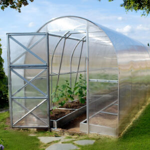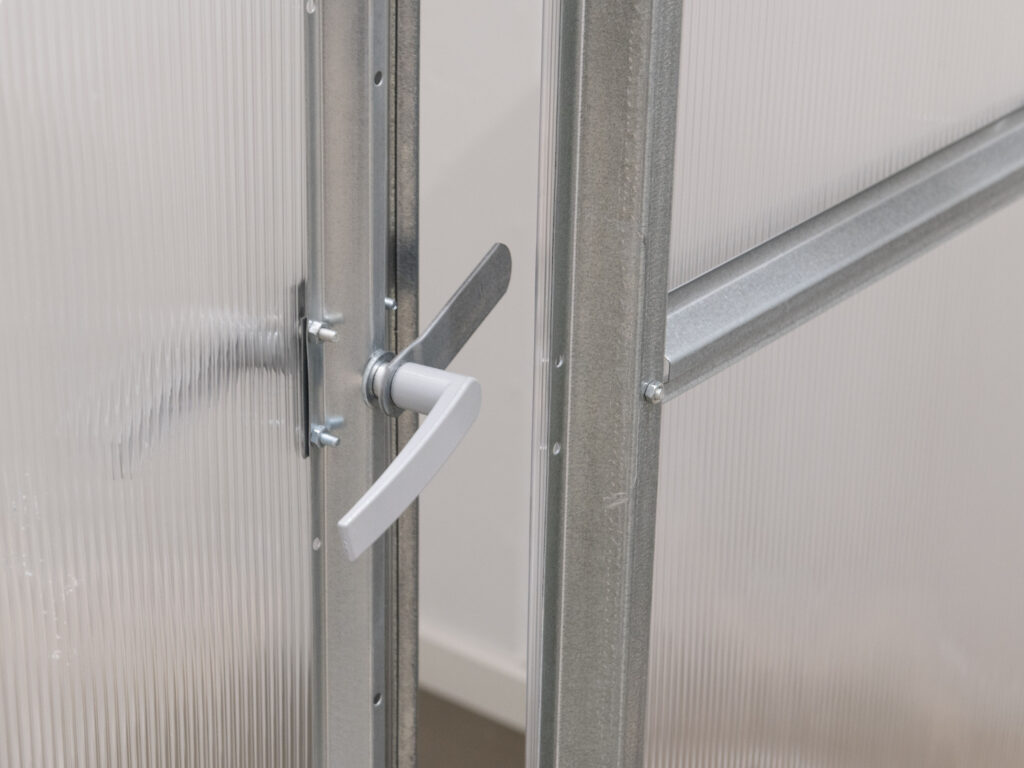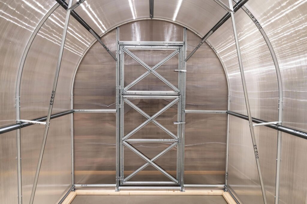Brage 200’s ramme er lavet af varmgalvaniserede stålprofiler, der kombinerer holdbarhed og funktionalitet. Det beskyttende zinklag forhindrer effektivt rust og korrosion, hvilket gør materialet ideelt til væksthuse. Med omega-bøjede profiler optimeres styrke og vægt, hvilket giver en konstruktion, der er både let og robust. Designet sikrer fleksibilitet og stabilitet til at modstå kraftige vinde og barske vejrforhold. Desuden er profilerne designet til at passe nemt sammen, hvilket gør monteringen hurtigere og mere effektiv.