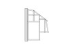 En dobbeldør med en delbar stalldør. Dørene er utstyrt med hengsler og åpnes alltid utover.