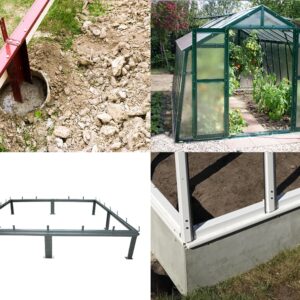 Markjärnssockel: Till detta växthus ingår en markjärnssockel som gjuts fast under marken. Fördelen med markjärnssockeln är att du slipper göra en egenbyggd grund för enkel och säker förankring.