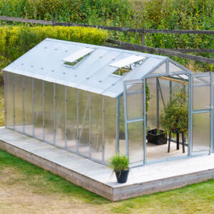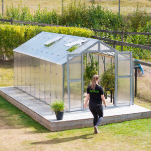 Rymligt och flexibelt. Med en bredd på 249 cm och en höjd på 213 cm lämpar sig Variant 249 mycket väl både för odling av en mångfald av växter och som ett extra rum i trädgården. Dessutom är det möjligt att i efterhand förlänga detta klassiska växthus med extra sektioner och skapa en ännu större odlingsyta.