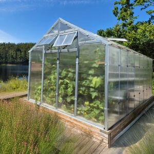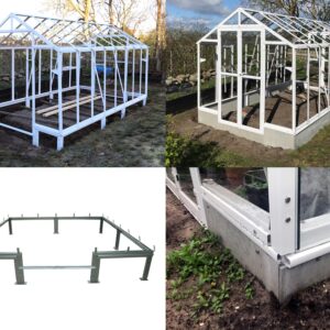 Om du i stället vill göra en egen grund till växthuset ska du kika på Variant 249 Standard MUR 20 cm – Med grundram. Då kan du bygga en egen grund/ram att placera växthuset på. Läs mer om grund och förankring här!