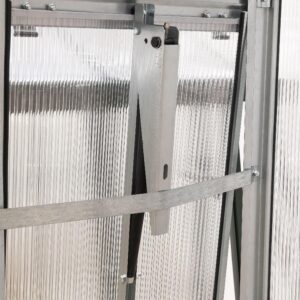 Rymligt och smidig. Med en bredd på 303 cm och en höjd på 209 cm lämpar sig Variant 303 mycket väl både för odling av en mångfald av växter och som ett extra rum i trädgården. Väggarna i detta växthus lutar 76 grader vilket bidrar till att mer solenergi når växterna än i traditionella växthus med raka väggar.