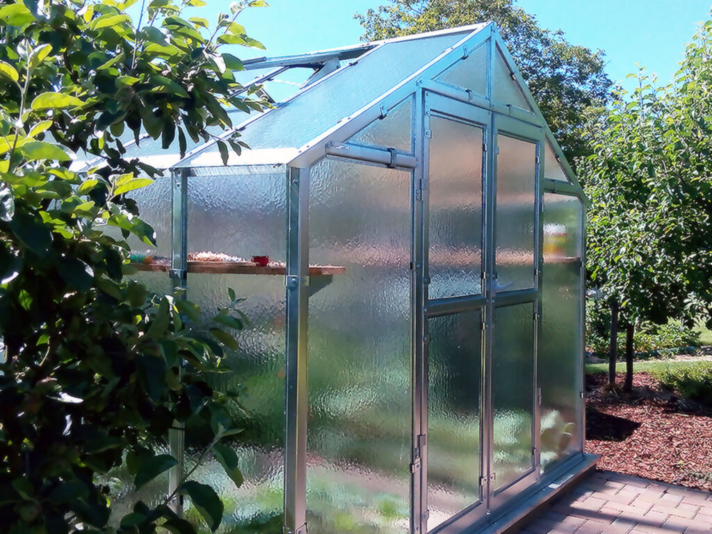 Ventilation och anpassningsbarhet. Dubbeldörr till den främre gaveln, takluckor och två öppningsbara luckor till bakgaveln ingår. Du kan också välja att byta ut de två medföljande bakgavelluckorna till en dubbeldörr samt välja till sidoluckor och extra takluckor. Ventilation är en avgörande faktor när det gäller att skapa en optimal odlingsmiljö i ett växthus. Vi rekommenderar därför att takluckor förses med automatöppnare som öppnar och stänger luckorna helt automatiskt. Automatöppnare bidrar inte bara till en fullgod ventilation utan bidrar även till att göra växthuset så underhållsfritt som möjligt eftersom du inte behöver öppna och stänga takluckorna manuellt. Utöver takluckor och automatöppnare erbjuder vi även en rad andra tillbehör så att du kan anpassa detta stormsäkra växthus till dina specifika önskemål. Bland annat erbjuder vi olika bevattningssystem.