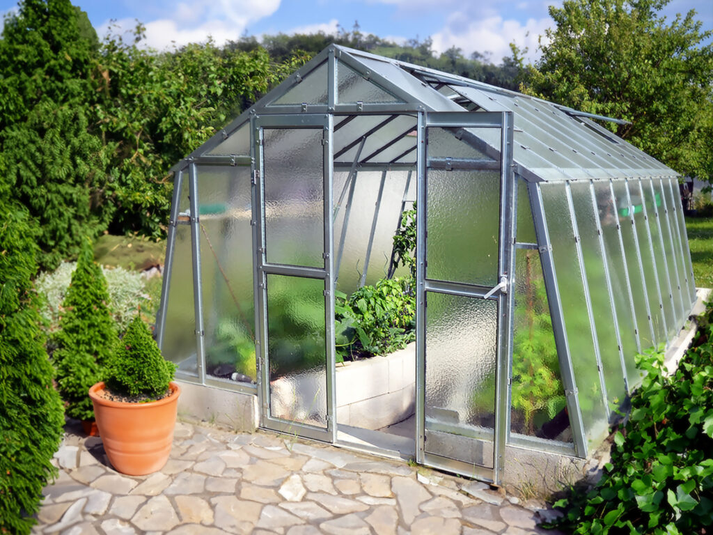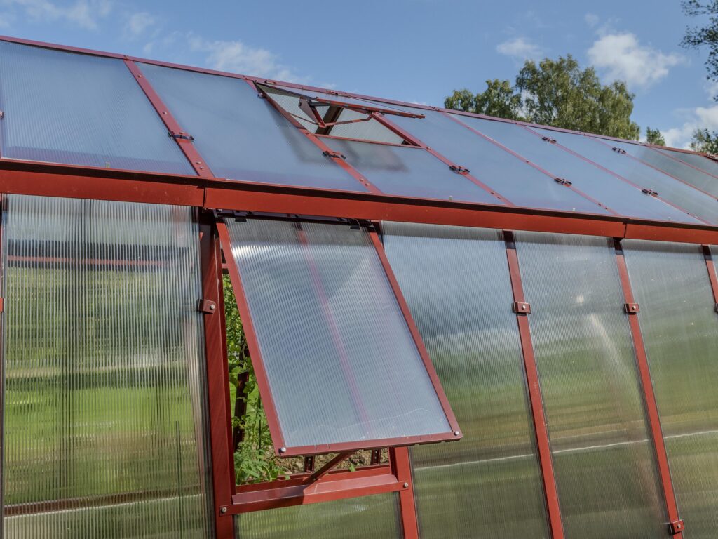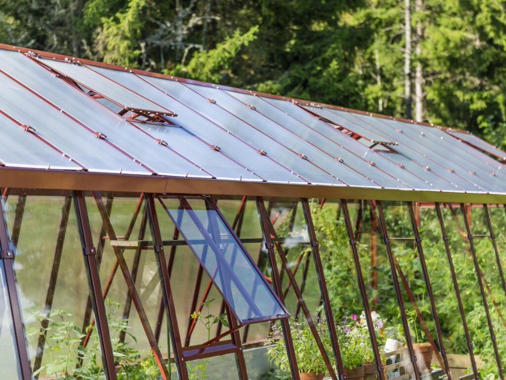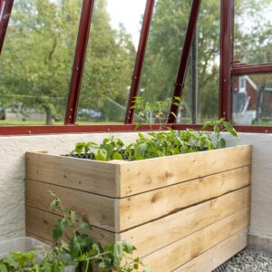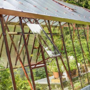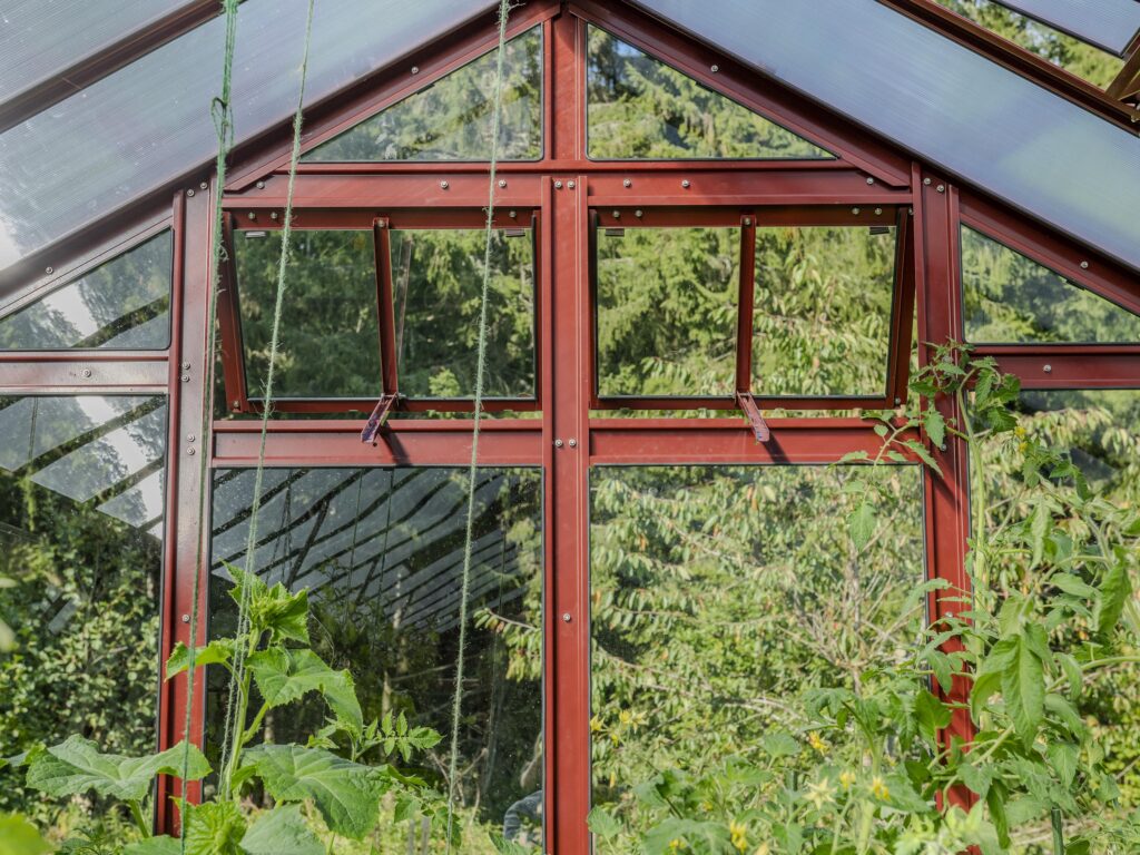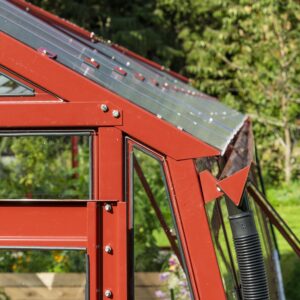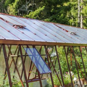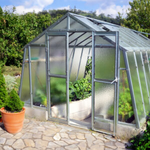 Ventilation och anpassningsbarhet. Dubbeldörr till den främre gaveln, takluckor och två öppningsbara luckor till bakgaveln ingår. Du kan också välja att byta ut de två medföljande bakgavelluckorna till en dubbeldörr samt välja till sidoluckor. Ventilation är en avgörande faktor när det gäller att skapa en optimal odlingsmiljö i ett växthus. Vi rekommenderar därför att takluckor förses med automatöppnare som öppnar och stänger luckorna helt automatiskt. Automatöppnare bidrar inte bara till en fullgod ventilation utan bidrar även till att göra växthuset så underhållsfritt som möjligt eftersom du inte behöver öppna och stänga takluckorna manuellt. Utöver takluckor och automatöppnare erbjuder vi även en rad andra tillbehör så att du kan anpassa detta stormsäkra växthus till dina specifika önskemål. Bland annat erbjuder vi olika bevattningssystem.