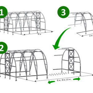 Du kan förlänga ditt växthus Oden 300 i färdiga sektioner. varje sektion är 2 meter lång och du beställer enkelt de antal sektioner som du vill förlänga växthuset med.