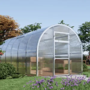 Väggar och tak består av högkvalitativ UV-skyddad kanalplast av 6 mm polykarbonat, som monteras utvändigt för ökad styrka och minskade köldbryggor. För smidigare montering ingår förskurna gavlar.