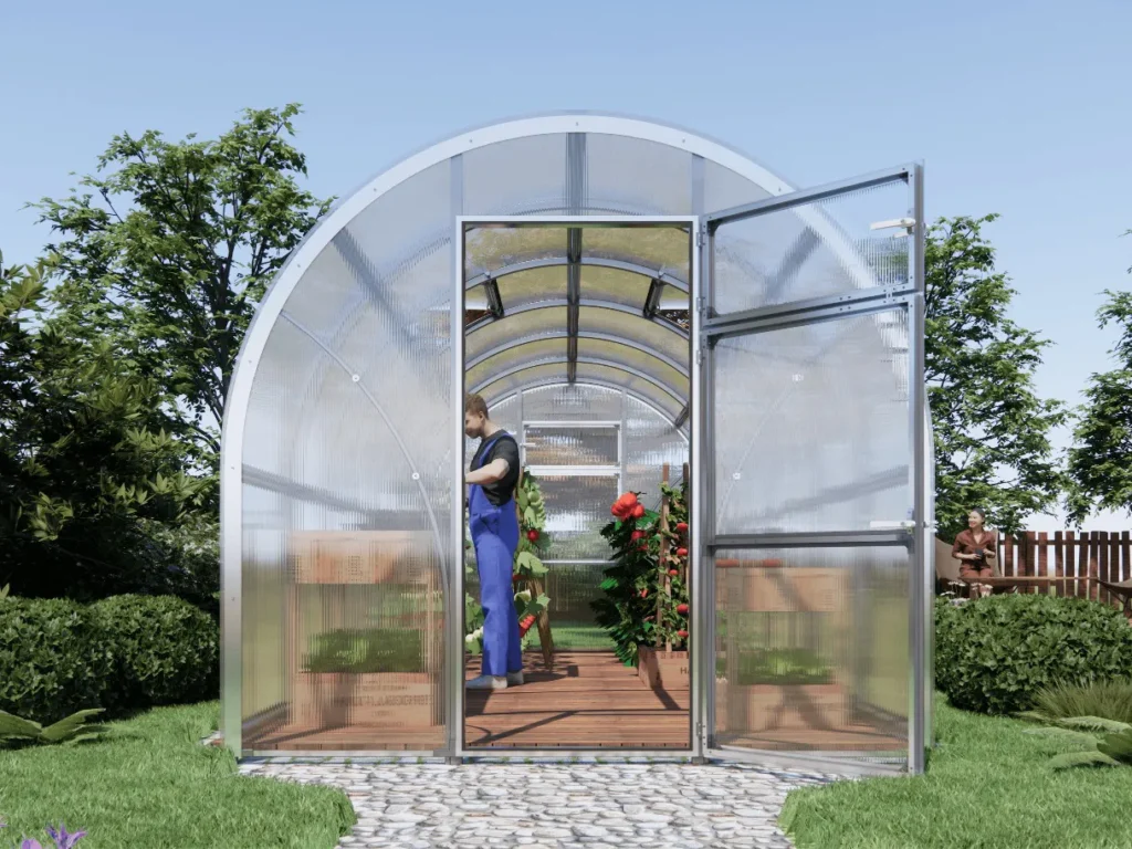 Detta växthus erbjuder enkel montering, en rymlig och luftig känsla samt en konstruktion med exceptionell motståndskraft mot både snö och vind.